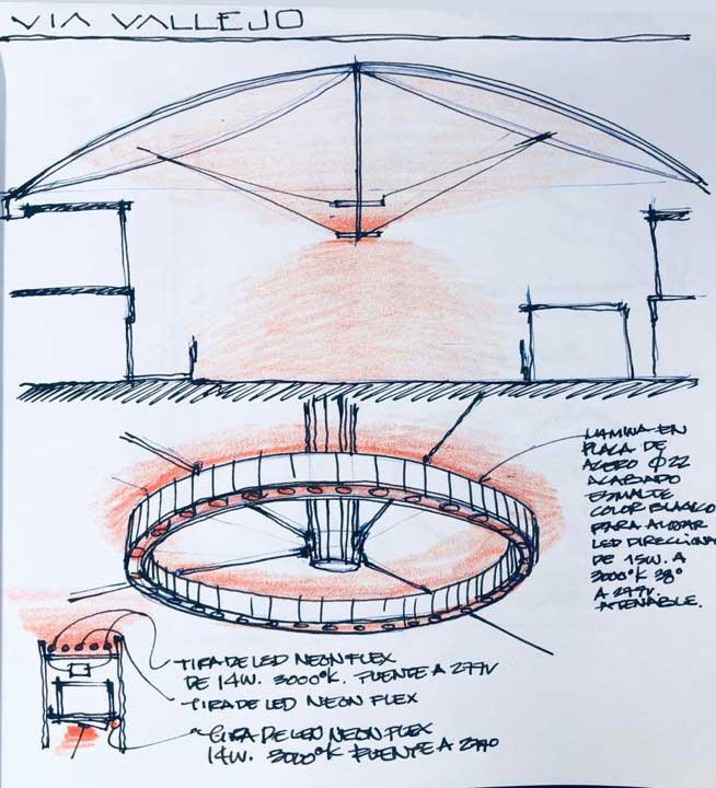 El diseño de las luminarias fue realizado de acuerdo al diseño conceptual para una iluminación bidireccional dinámica con control DMX 512 con el uso de radiofrecuencia para facilitar el cableado de señal.