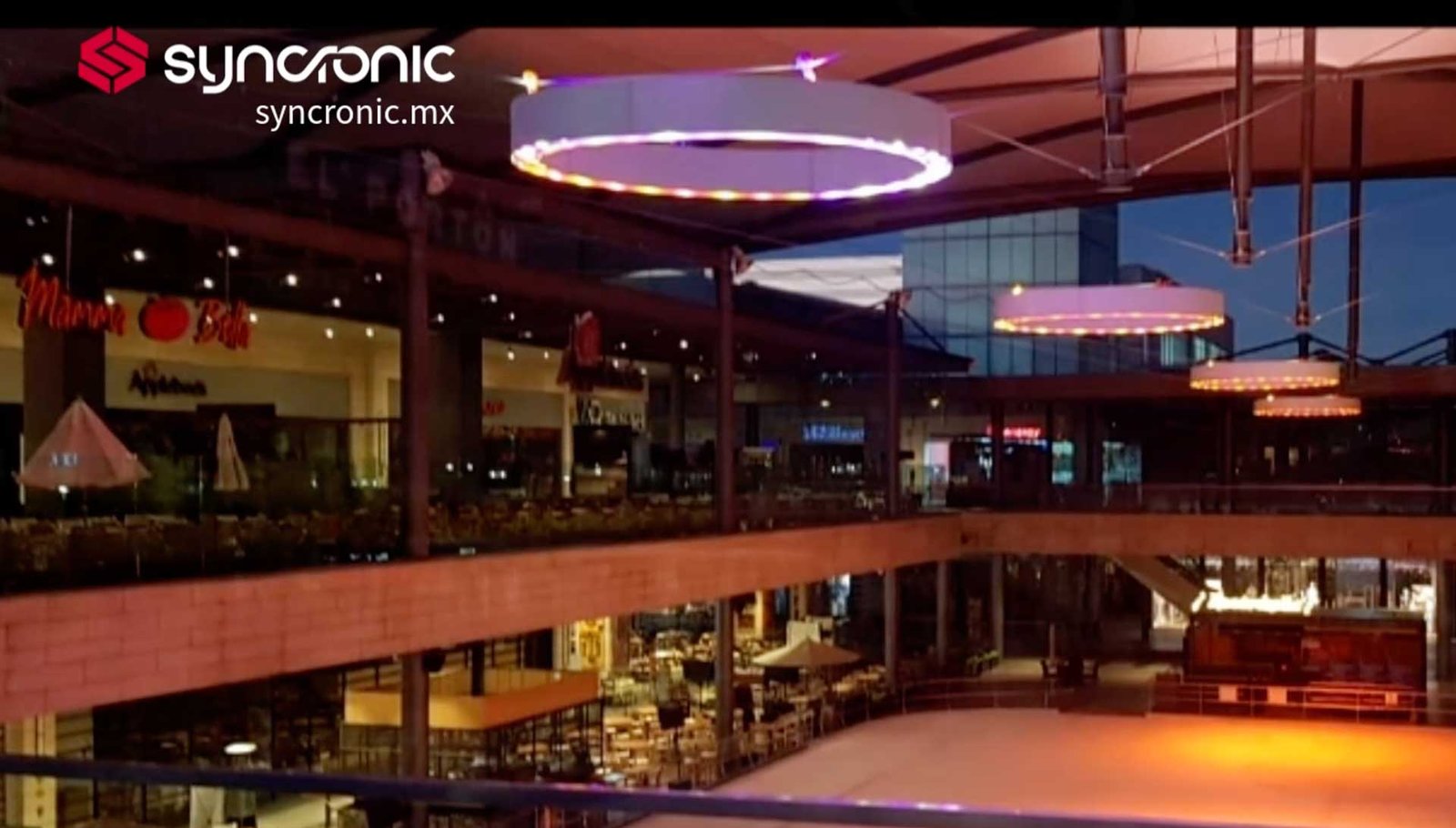 Proyecto de alta complejidad por tener que instalar luminarias sobre una pista de hielo sin uso de elevadores trabajando con equipos de noche sobre techos de vidrio.